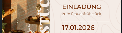 Am Samstag, 17. Januar 2026 um 9 Uhr findet wieder ein Frauenfrühstück im Gemeindehaus statt, zu dem wir alle Frauen ganz herzlich einladen:
