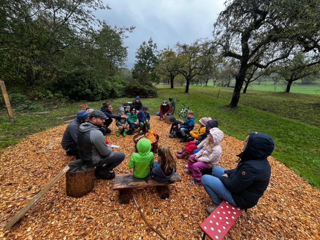 Da wir draußen sind, bitte den Kindern Wetter angepasste Kleider anziehen und gute, wasserdichte Schuhe. Dazu eine volle Trinkflasche im Rucksack.